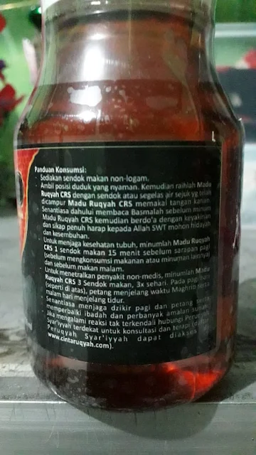 minumlah Madu Ruqyah CRS 3 sendok makan, 3x sehari. Pada pagi hari (seperti